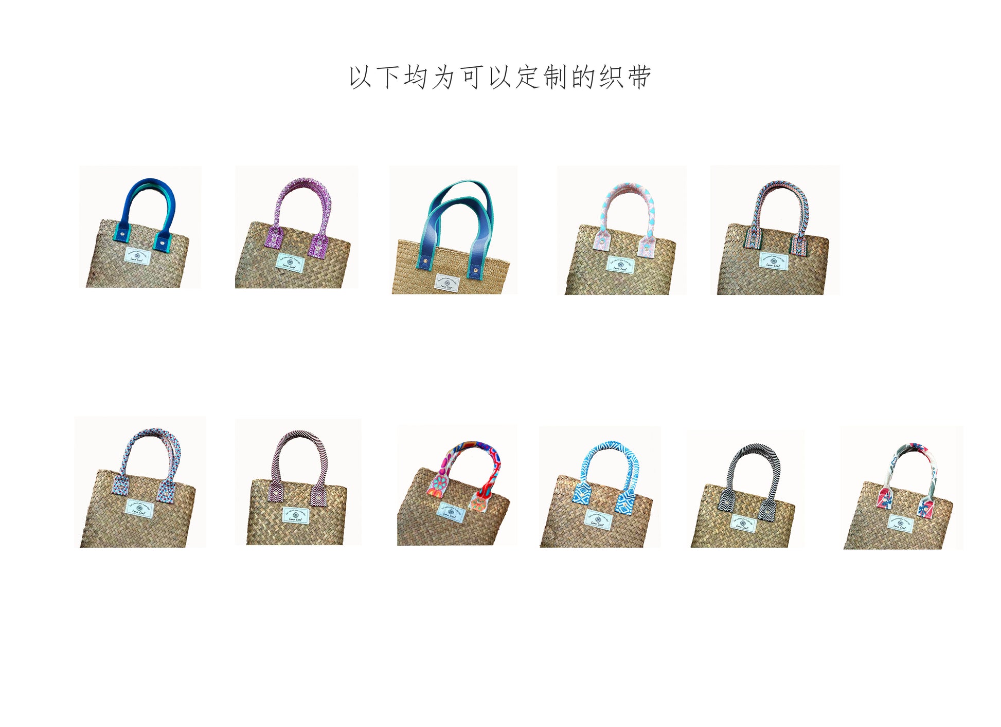 Luna Leaf Traditional Handwoven Craft Bag with Vintage Jacquard Ribbon, Handmade Grass Weaving Vacation Bag